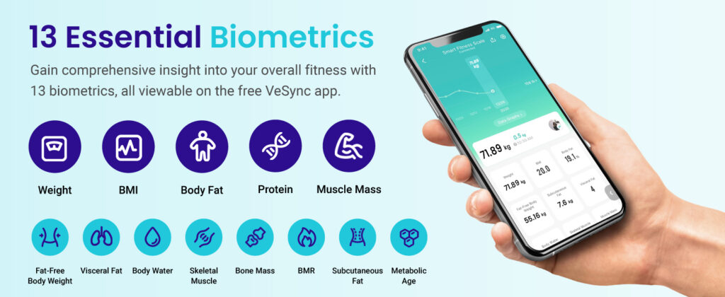 • 13 Essential Measurements: The advanced BIA technology provides 13 helpful data including body fat, muscle mass, water weight, BMI, and more, to know your physical condition better or improve your diet plan
