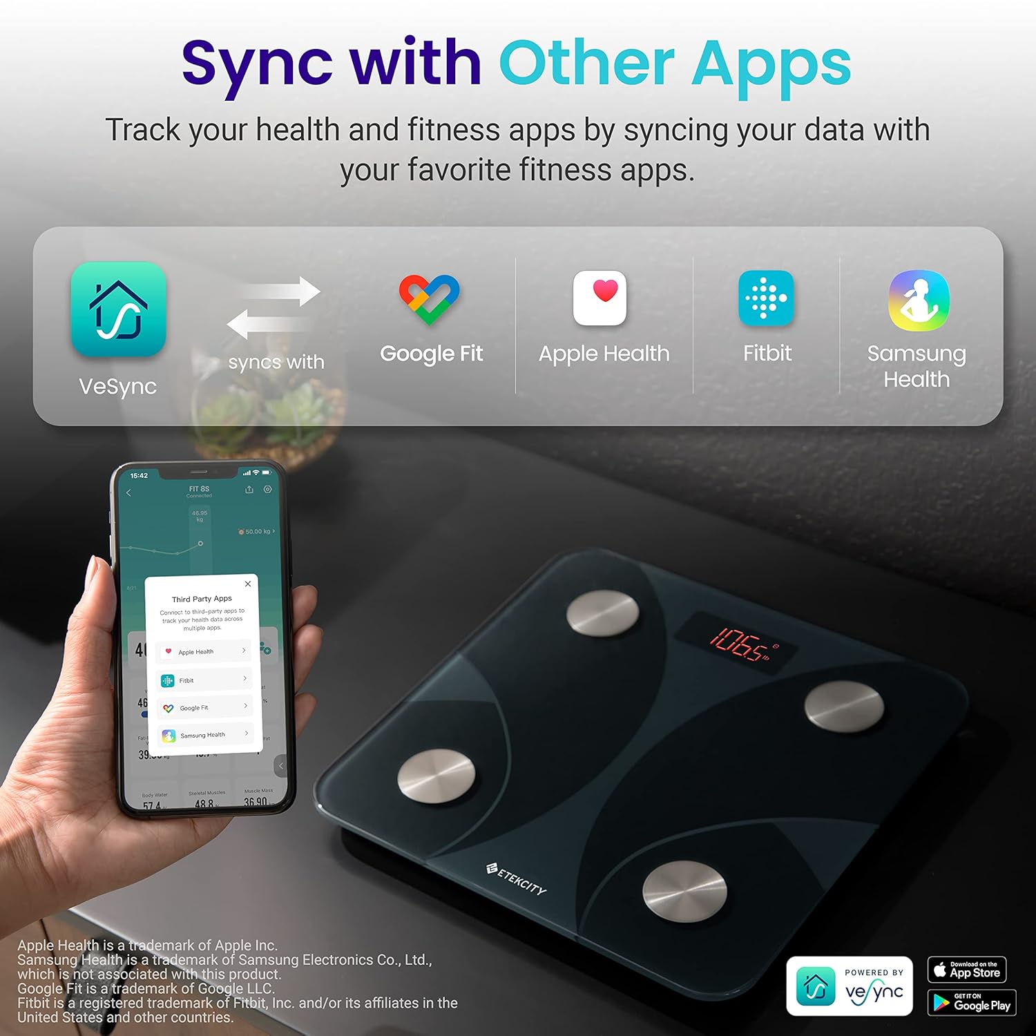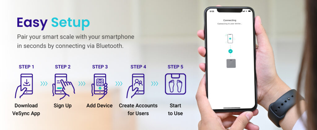 • Note: for the data of the body scale to sync in Google Fit, Android users will need to connect both the VeSync App and Google Fit to the Health Connect app