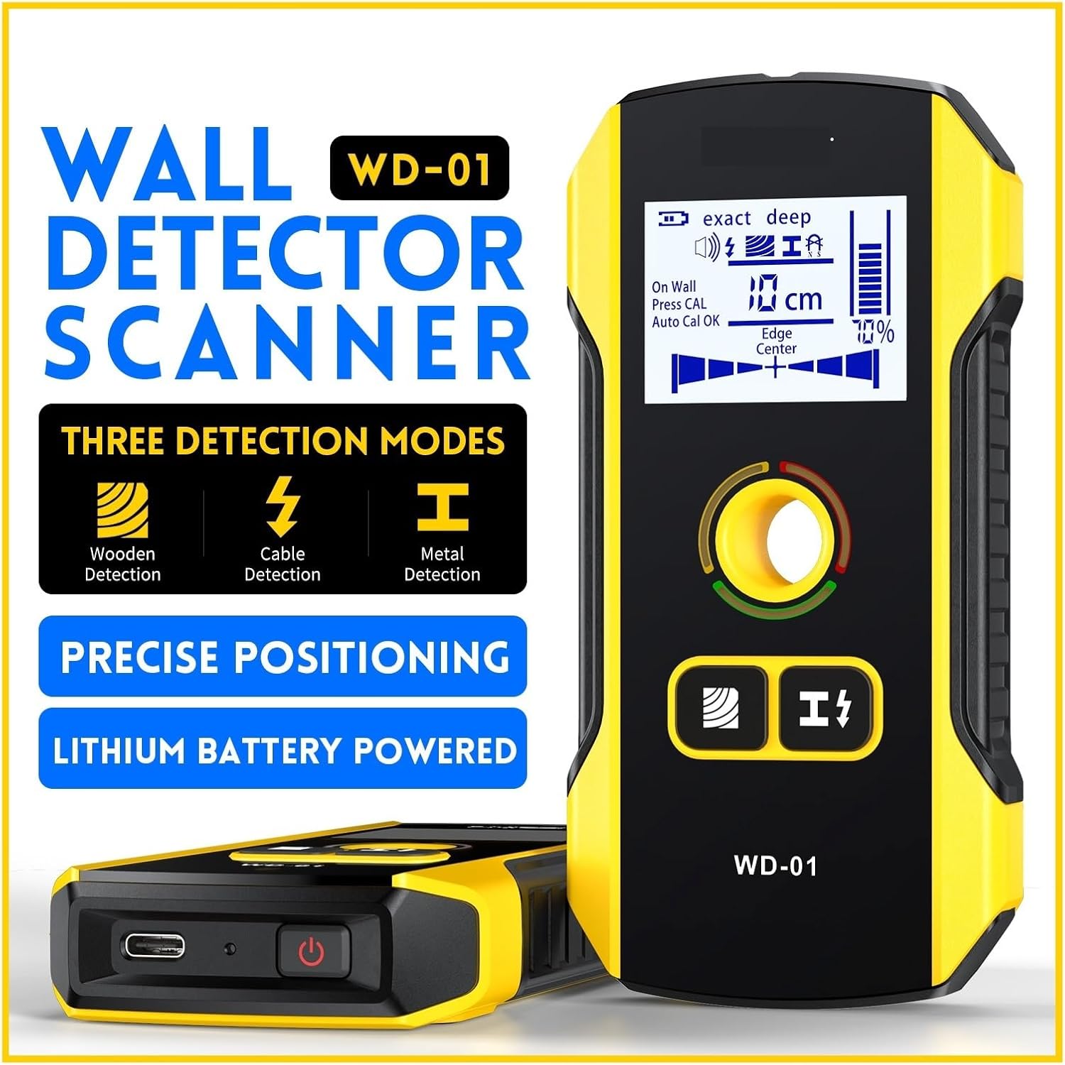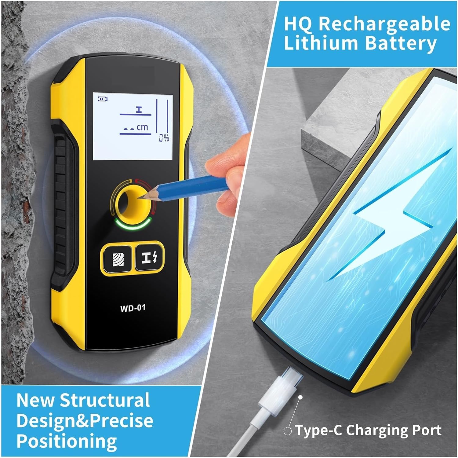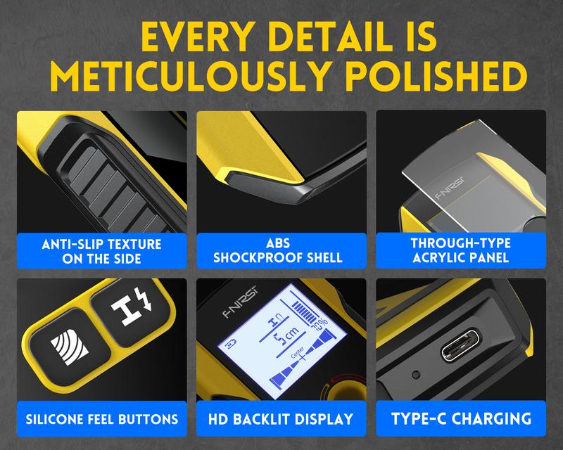 • This wall detector scanner can help you to quick locate edges and center metal, studs, joists, pipes and live AC wire behind walls, floors and ceiling. The measuring ranges of wooden is s38mm, AC wires ≤40mm,metal pipes s100mm and rebars s120mm. Franklin 710 Stud FinderlStake Down DetectorlMultiple Depth Modes:Features Depth Mode (38mm) and Precision Mode (20mm) for accurate metal and wood detection. Wide Detection Range:Detects metals up to 120mm AC wires up to 50mm, and copper wires up to 100mm. Intuitive Display:LCD screen shows target depth, material, and alerts with a clear, easy-to-read interface. Convenient Positioning:Equipped with a center positioning hole for precise drilling after detection. Portable and Rechargeable:Compact design with a 3.7V 300mAh rechargeable battery for on-the-go use. We provide a 1 year maintenance service and lifetime technical support.lf you have any questions or problems while using the product, don’t hesitate to contact us!