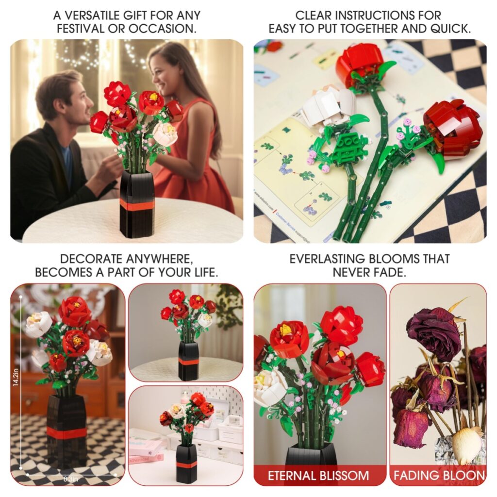 Der Klemmbaustein-Rosenstrauß ist eine interessante Alternative zu LEGO und lässt sich ähnlich gut zusammenbauen. Die Farben und die Verarbeitung sind jedoch nicht ganz auf dem Niveau von LEGO. Andere Rezensionen loben diese Aspekte, aber unsere Erfahrung war, dass die Qualität etwas hinterherhinkt.